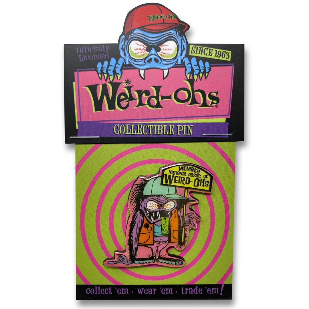Flash your official Weird-ohs National Membership pin with pride! This officially licensed, National Association of Weird-ohs pin from Retro-A-Go-Go has full, brilliant color with a high quality thick crystal-clear coat finish. It features two easy on, easy off, black rubber fasteners on backside to secure the pin in place and prevent spinning. Comes on a super cool backer card too!