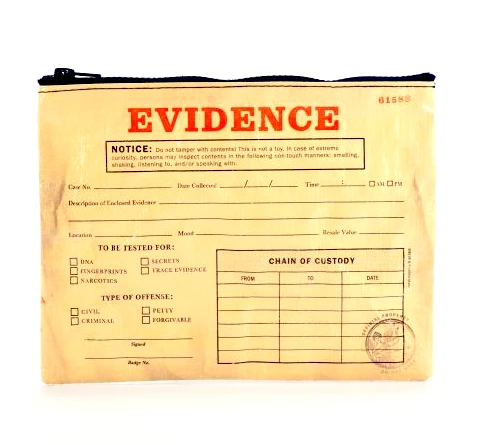 Tired of people tampering with your stuff? This Evidence zip pouch is sure to deter them! It’s the perfect size for bloody knives, stray pieces of fabric, hair strands, or maybe just some makeup or hair products. Made of 95% recycled post-consumer material.