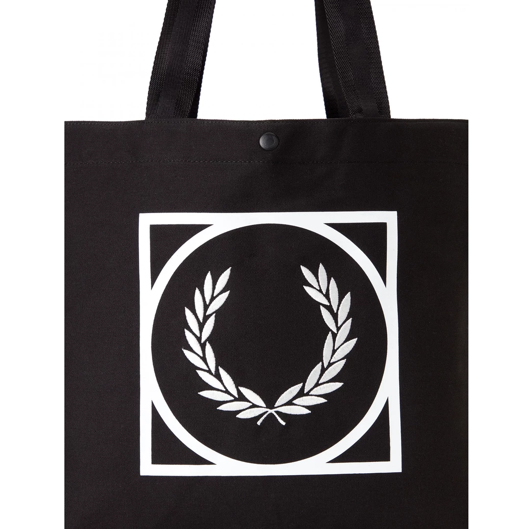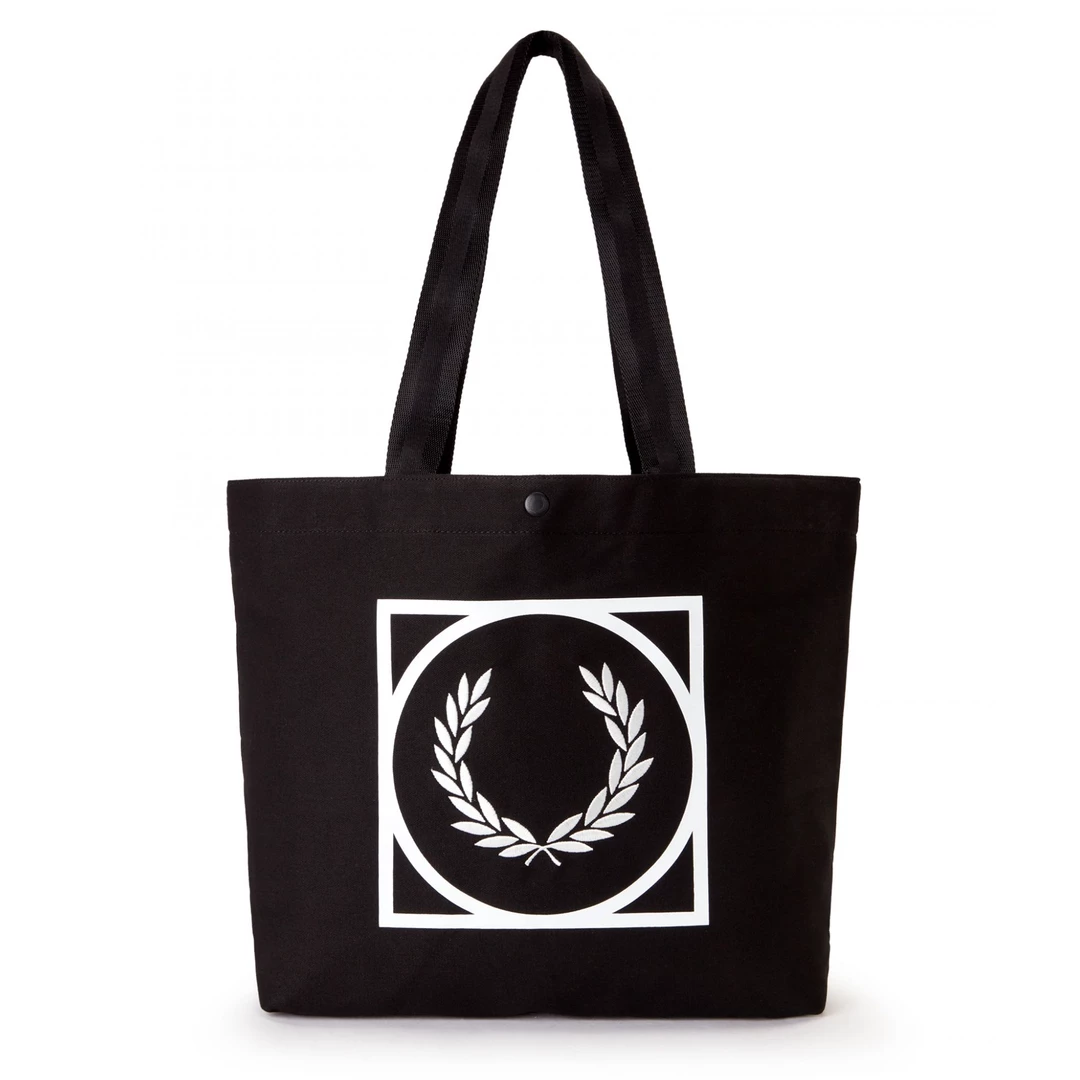 Perfect for record shopping, the Fred Perry graphic tote bag is the ideal size for your latest vinyl haul and features their classic logo on the front in white. Made of a durable cotton canvas with equally durable webbing straps and snaps close with a branded press stud. The interior features printed lining with an internal zip pocket.