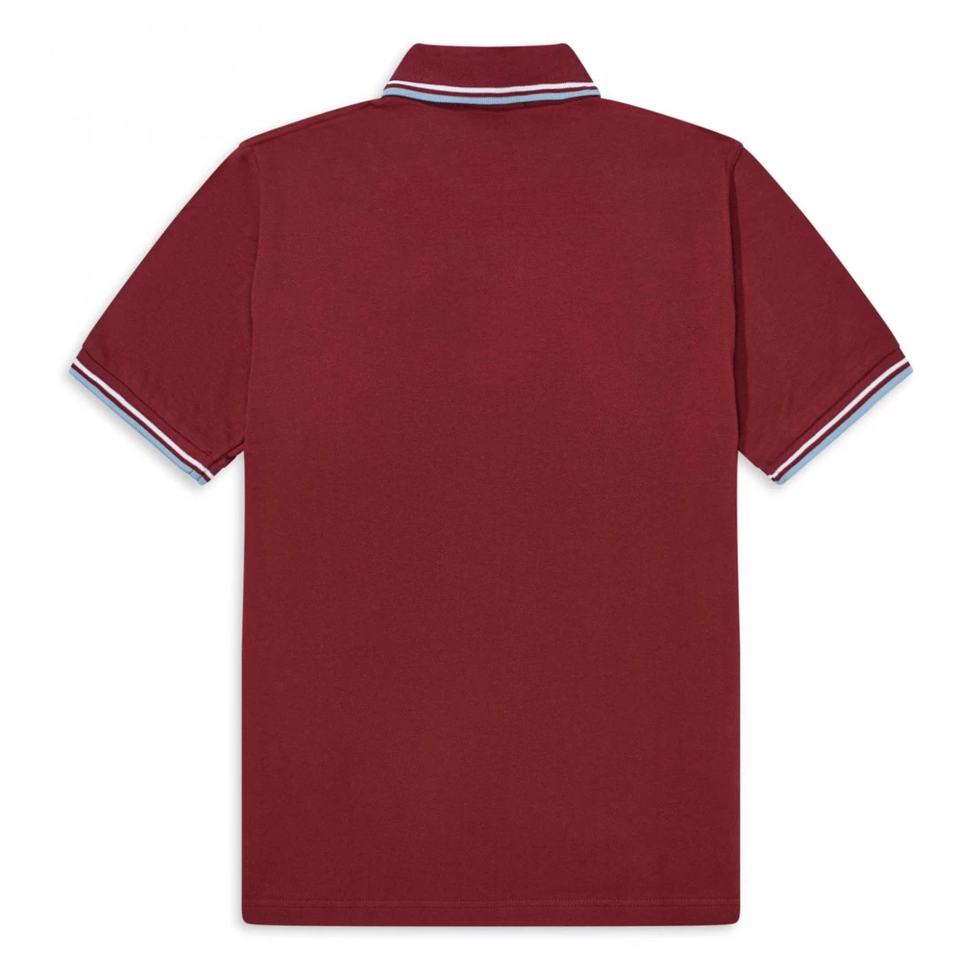 Keep it classic in a M12 Fred Perry polo! This maroon hued cotton polo shirt features ice blue and white twin tipping with a matching ice blue embroidered Laurel Wreath on the chest. Designed in their famous streamlined fit – slightly boxier than the M3600 – it’s production is a real labor of love, with each polo knitted, dyed, cut, embroidered and hand-finished in Leicester, England.