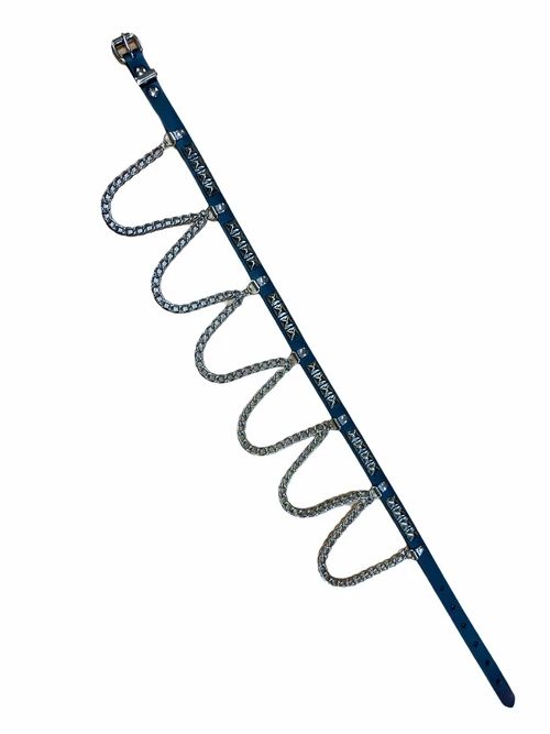 Amp up any look with this belt complete with silver pyramid studs and looped chain accents. It’s approx. .75″ wide with 1/2″ pyramid studs and looks great over form fitting dresses or over your favorite black denim.