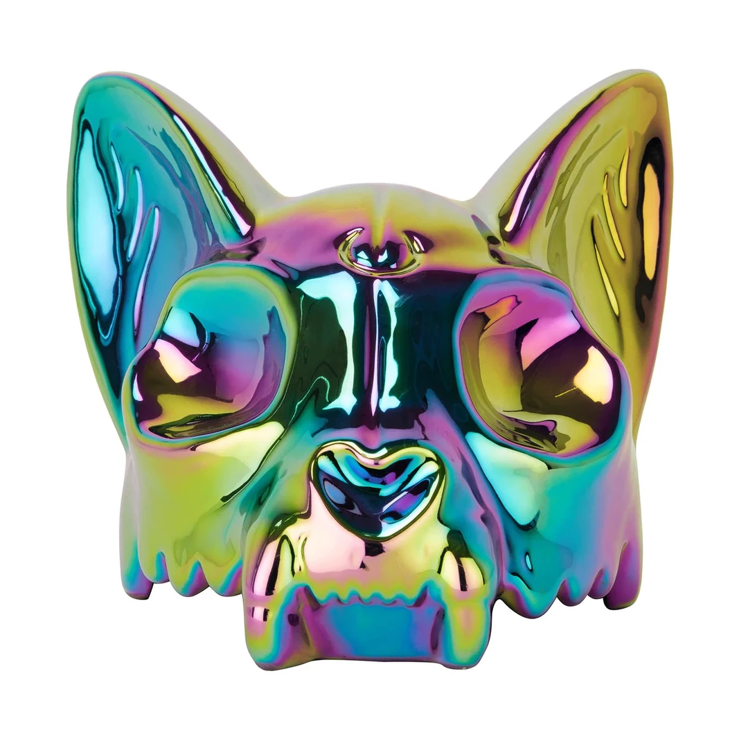 Add some rainbow magic to your space with the Kitty Skull from Killstar! Crafted in ceramic with beautifully sculpted details and a high shine iridescent aura finish. The perfect piece to complete your coffee table, shelf or place them wherever your dark heart desires!