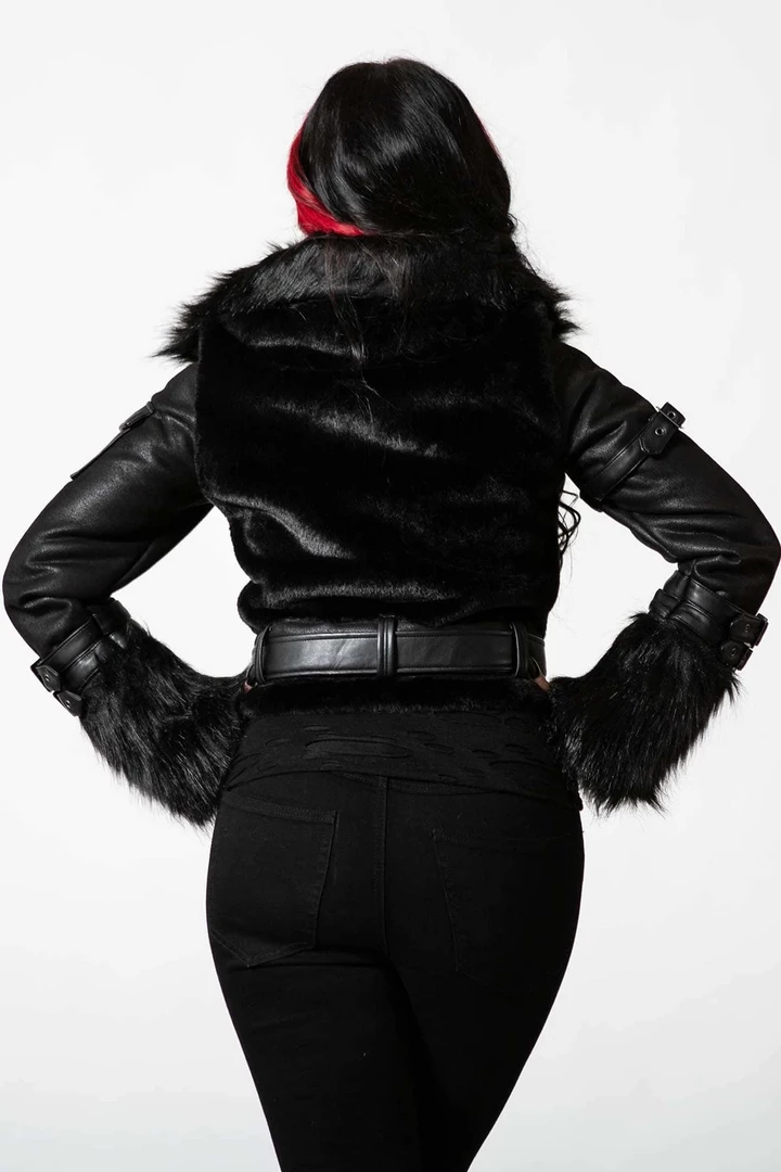 Keep warm while serving serious looks in the killer Alchemy Aviator Jacket from Killstar. This unique jacket features mixed faux fur and faux leather details for a warm and comfortable fit. Complete with buckle and zip details, this is a must-have piece for any winter wardrobe!