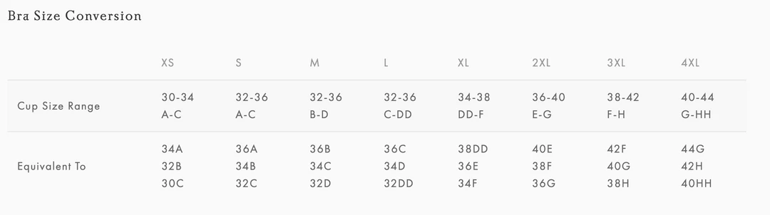 - Please see photos for Bra Size Conversion chart