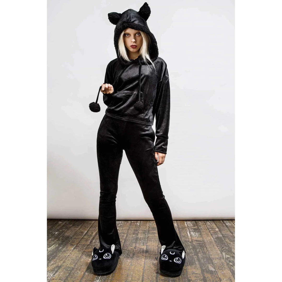 Curl up with your pack under the full moon in the Lone Wolf Lounge Set from Killstar! Made from a super soft fabric, the set includes a cropped long sleeve top with sherpa-lined hood, wolf ears and tassels, and matching pants. The puuurfect lounge set for a rainy day on the couch!
