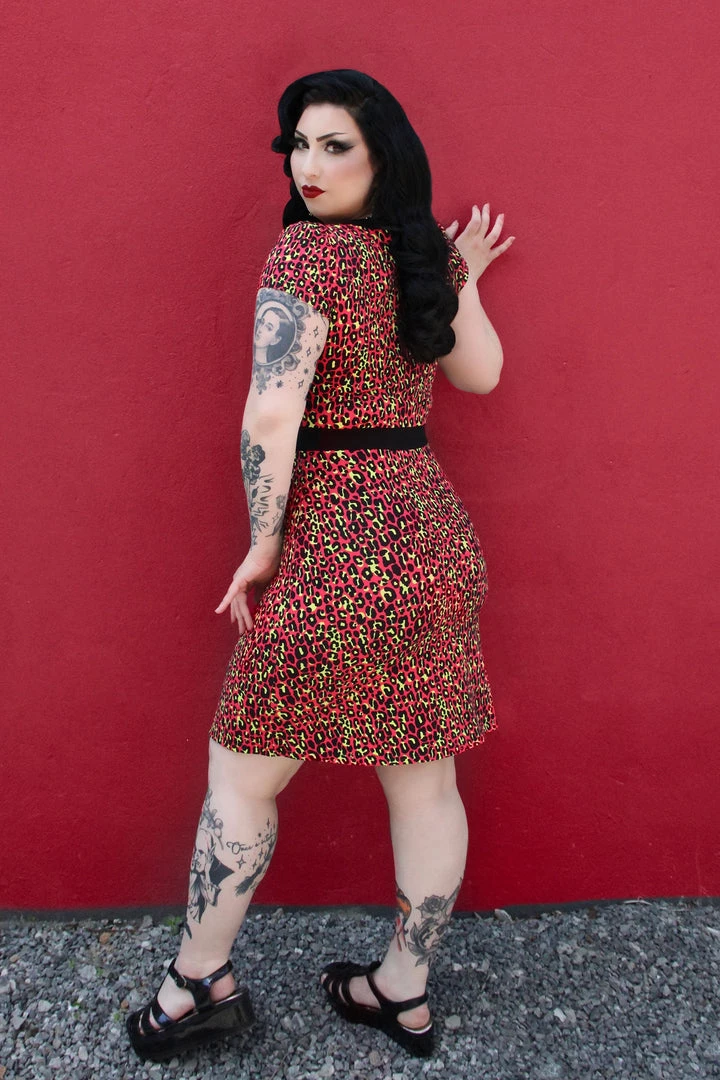 Our popular Beki dress has made a very LOUD comeback! The Hot Pink Leopard Beki dress is made out of a soft and stretchy cotton spandex knit, complete with a contrast neck and waist rib and oversized, absolutely perfect buttons! We just can’t get enough of this simple and cute silhouette, how about you?
