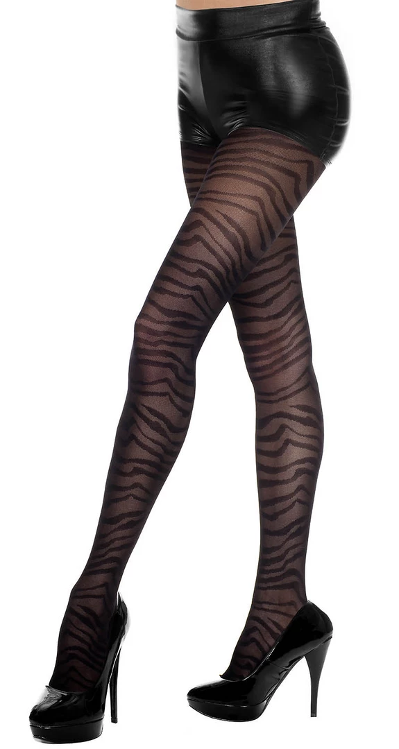 Get ready to pounce in these All Black Tiger Stripe Stockings! The semi sheer stockings feature an all over tiger stripes print in black on black.