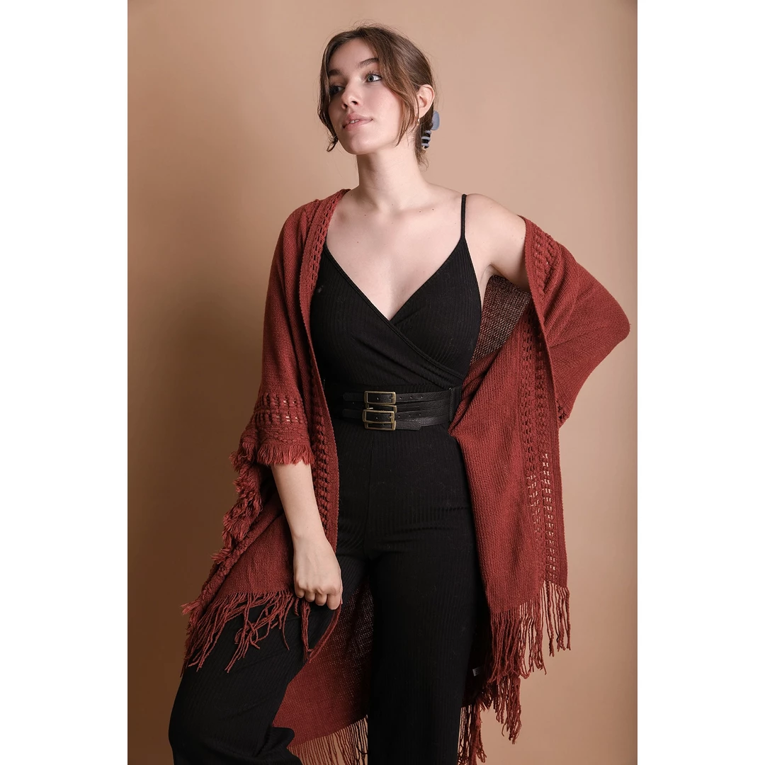 Create some added interest to basic black ensembles with the Ember Multiple Buckle Black Stretch Belt. This elastic belt has two snaps in the back to close and four buckles at the front that are adjustable to fit a variety of sizes.