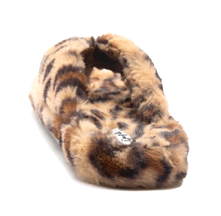 Slip your tired feet into these Leopard Fluffy Sandal Slippers! Made of a super soft faux fur in fabulous leopard print, these slippers feature a grippy rubber bottom and are great for lounging about the house.