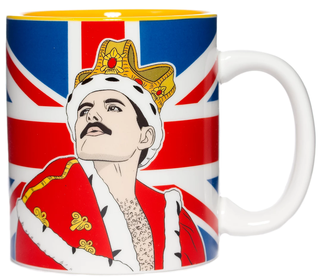 Don’t stop me now…cause I’m having my coffee, I’m having my coffee! This mug features an original illustration of Freddie Mercury amongst a backdrop of the Union Jack. Comes packaged in an illustrated box, so it’s ready for gift giving!