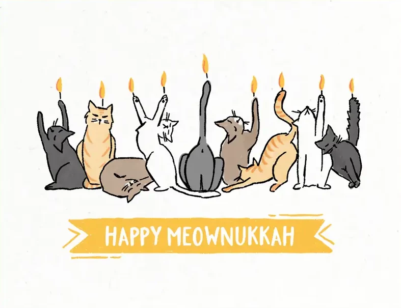 Happy Meownukkah! The purrrfect Hanukkah card is here! This adorable card from Paper Pony Co. is printed on 100% recycled paper and comes with a coordinating yellow envelope. Blank interior.