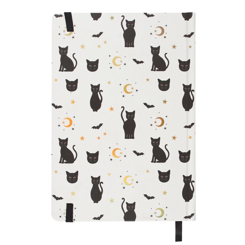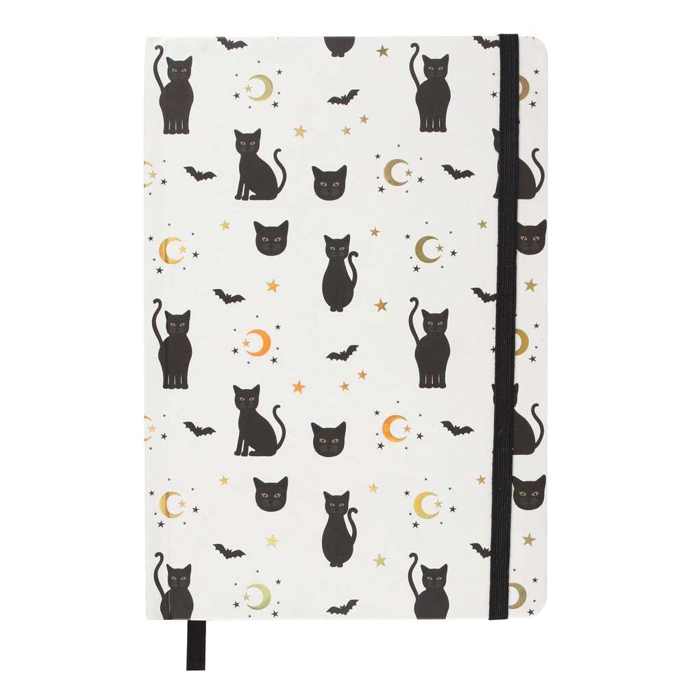 This bewitching Gothicat notebook comes with a stylish cover accented with black cats, half moons and stars. Jot down notes, ideas, or use as a journal! Paper is plain within the notebook and has a ribbon bookmark to keep your place.