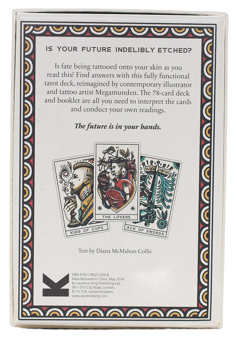 Is your future indelibly etched? This beautifully illustrated set of tarot cards is based on traditional tarot iconography but interpreted by MEGAMUNDEN. The set contains the 78 cards of the tarot deck, luxuriously packaged in a gift box. A 28-page booklet explains how to interpret the cards and conduct your own readings, gaining a fascinating insight into what lies ahead and a fresh perspective on important themes and opportunities to watch for.