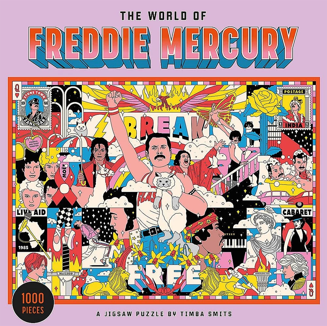 Dive deep into the World of Freddie Mercury with this fun 1000-piece puzzle! Full of details – spot famous figures, fellow musicians, and references to his greatest songs as you build the puzzle. Included is a fold-out poster that includes fun facts about Freddie Mercury’s life and work.
