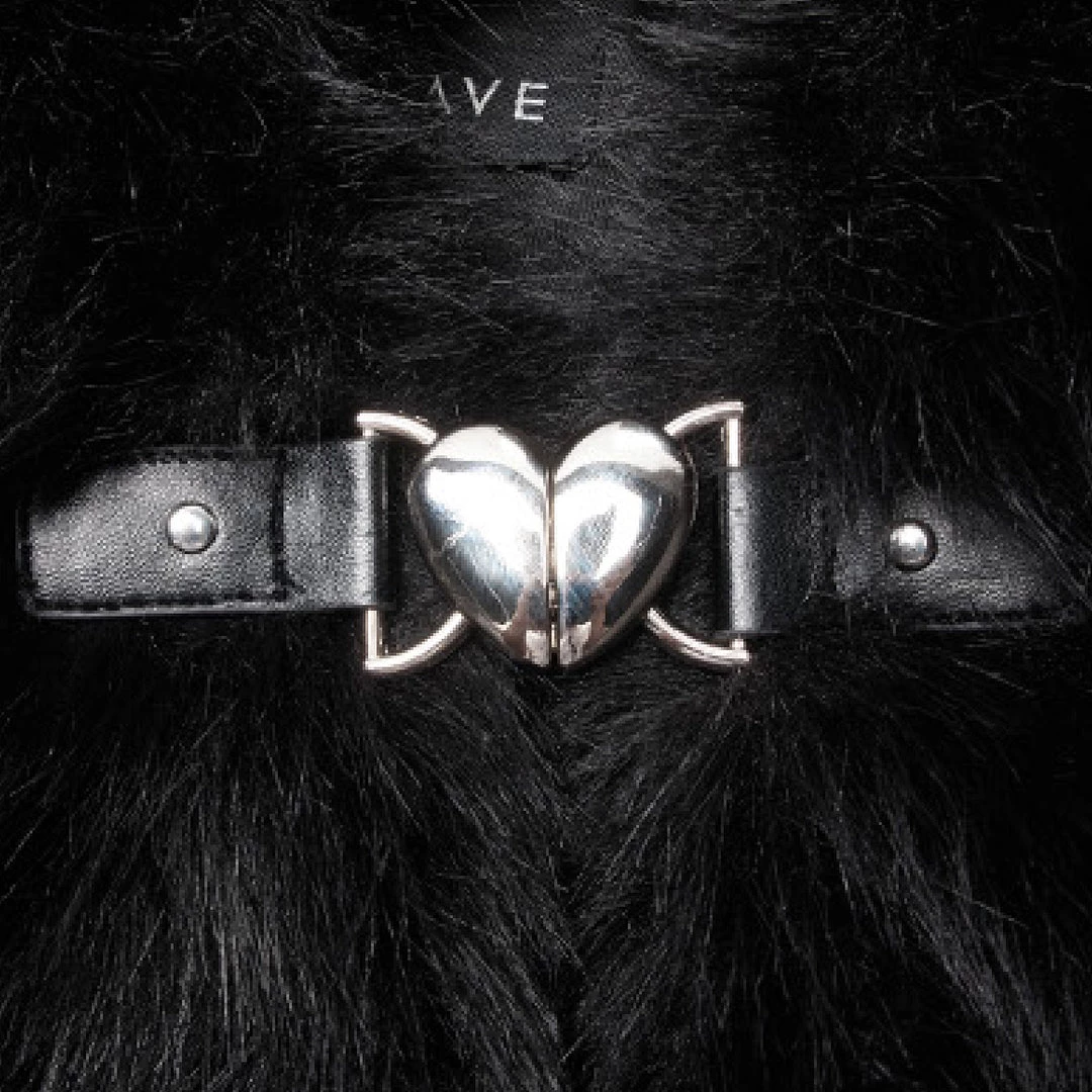 Add a touch of mystery and glam into your everyday wardrobe with this fabulous black Faux Fur Short Coat from Punk Rave. Hitting right at the waist, this soft and lush faux fur coat fastens close with a heart shaped loop buckle in silver (but looks great unbuckled too!). The turn down collar adds drama while keepin’ ya warm!