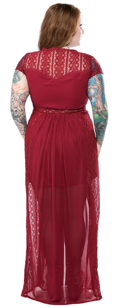 SKU: restyle-7157301346463 Categories: Apparel, Dresses, Sale, Shop Sour+Plus, What's New Tags: Burgundy, Dark, Dress, Long dress, Maxi, Red, Restyle, Sheer