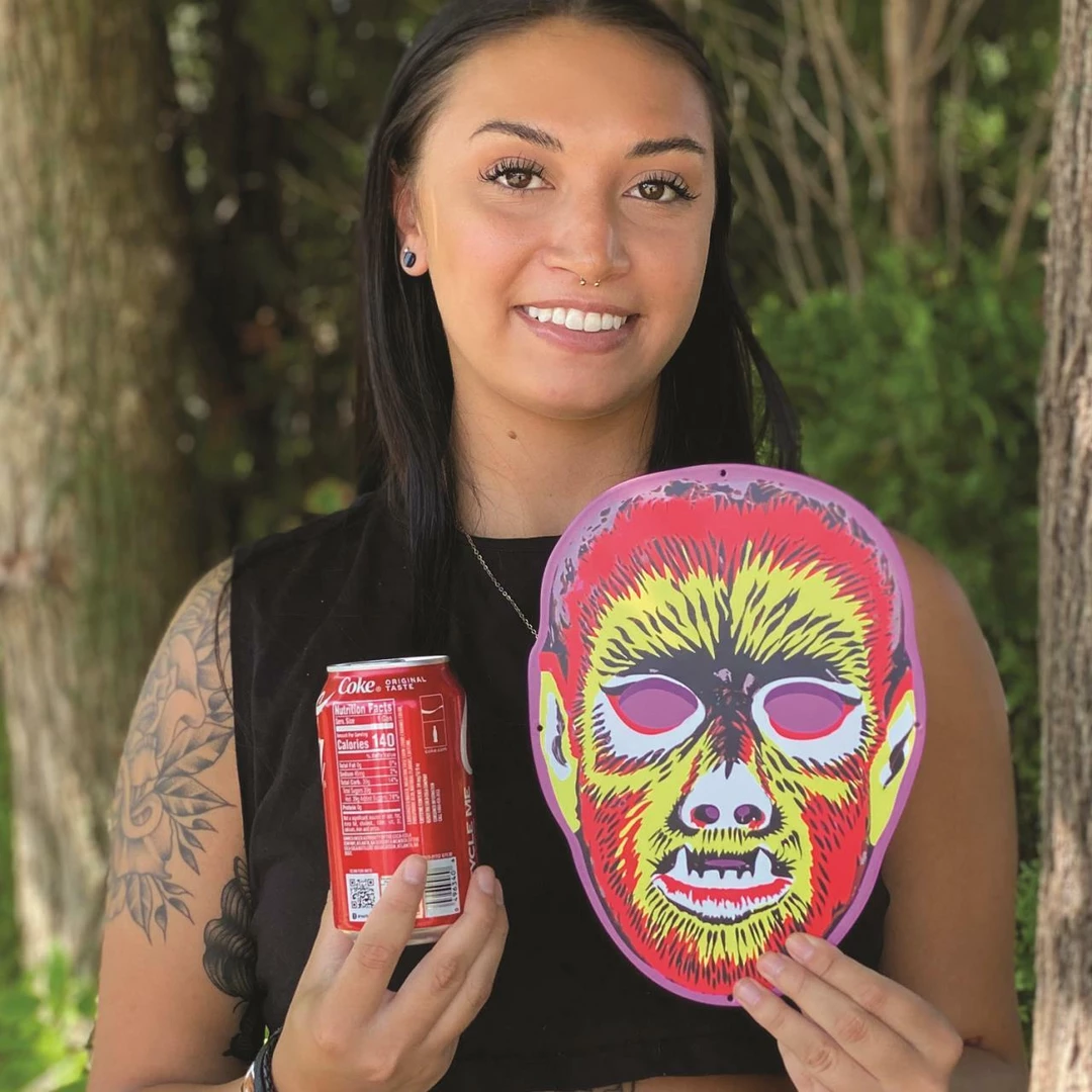 Howl with delight and add some retro flair to any room of your choice. This original Retro-a-go-go! artwork is inspired by the fun and sort of creepy oversized Halloween masks that were popular in the 1950’s thru the 1960’s. Colorful and graphic in their own right – perfect for a night of fright! This plasma cut out metal sign is hand made in the USA using heavy gauge american steel and a process known as sublimation, where the image is baked into a powder coating for a durable and long lasting finish. The smaller size makes them a perfect fit for any home!