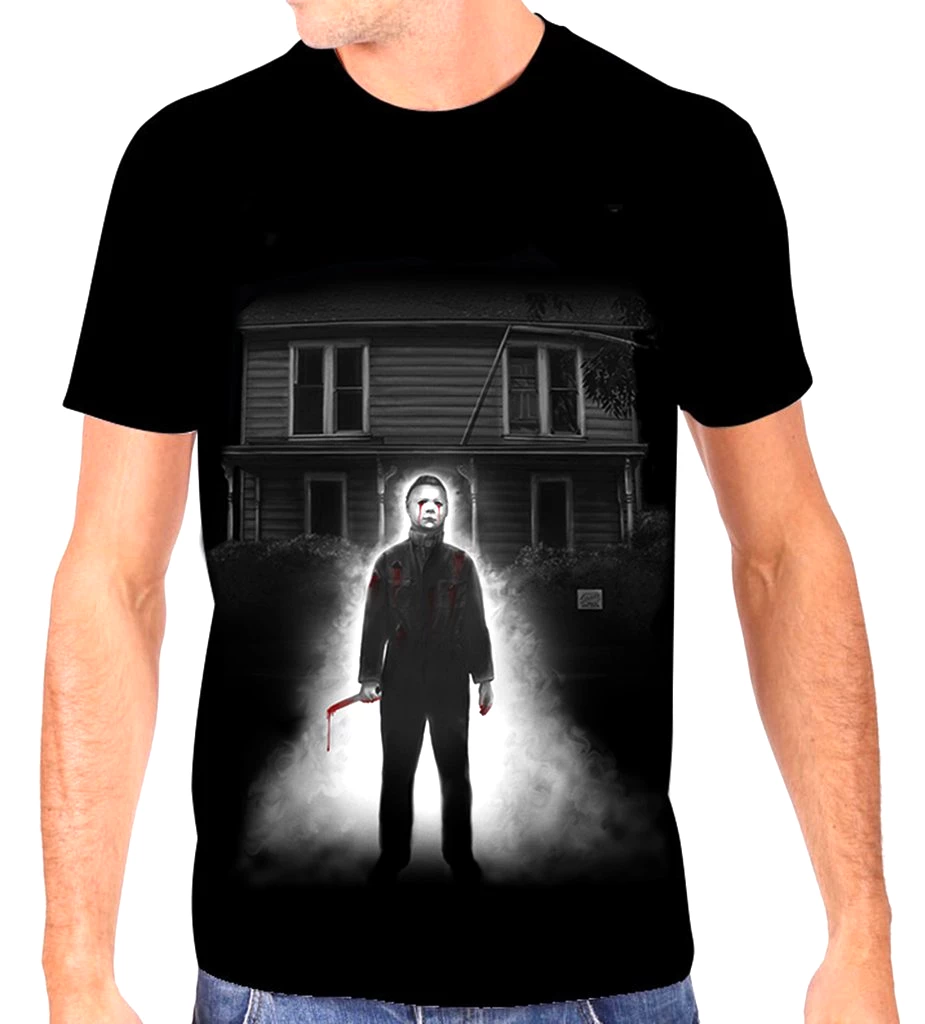 Get ready to get stalked with this Michael Myers’ House t-shirt from Rock Rebel. Officially licensed with a high-quality graphic printed on slightly fitted, sturdy but breathable, black unisex tee.