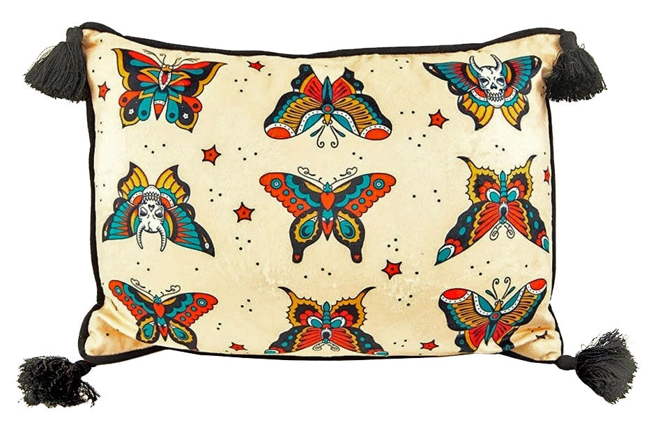 Shop Sourpuss SOURPUSS TATTOO BUTTERFLIES PILLOW