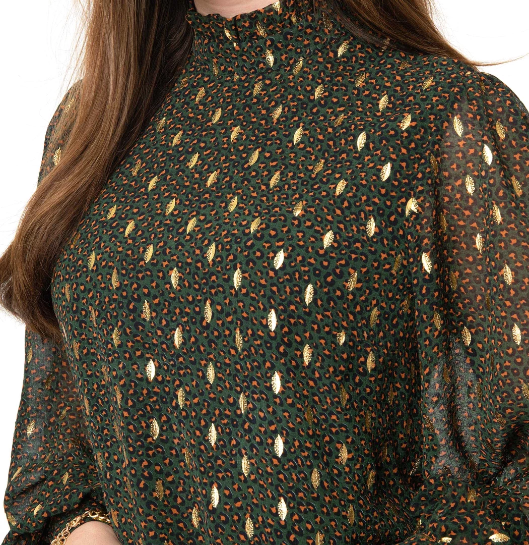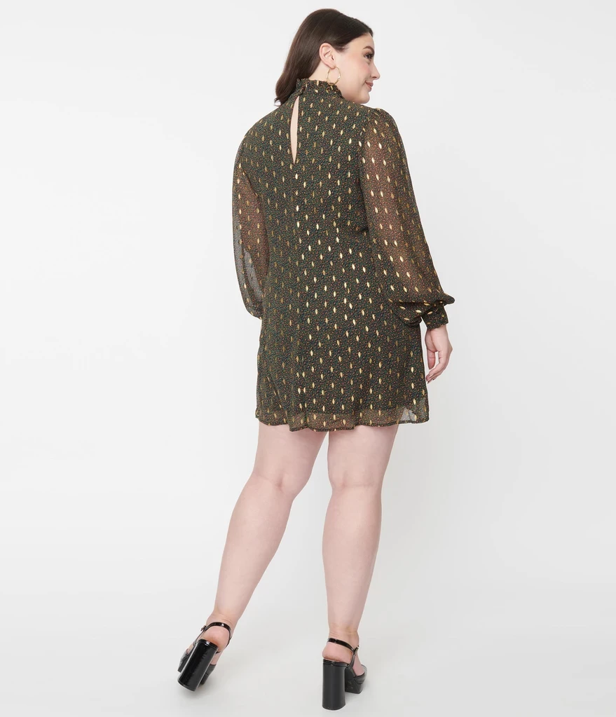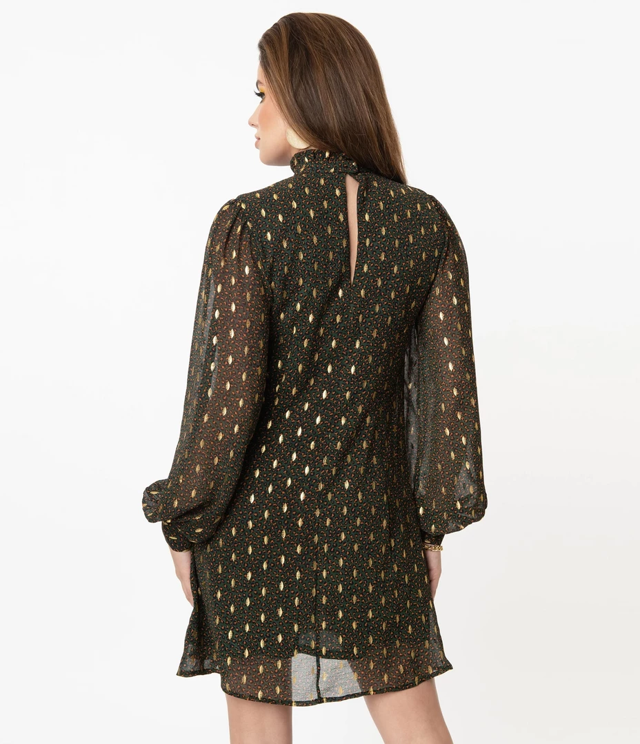 Smak Parlour is taking leopard print to the next level with this stunner! This retro minded silhouette dress from Smak Parlour features a green emerald leopard print throughout, with eye catching gold accents. This shift dress shows off a hint of form while the high neckline is secured in the back with a button and peekaboo keyhole. The flowing long sleeves are cinched at the wrist with a button cuff, for a little extra flare.