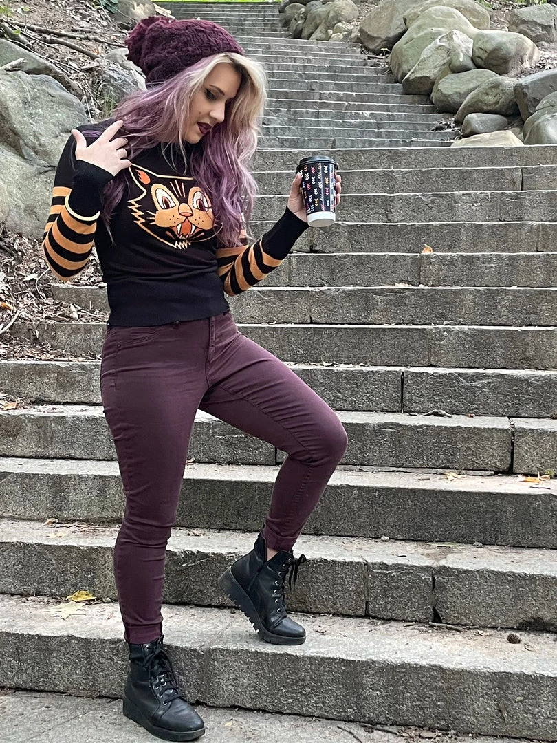 SOURPUSS BLACK CAT STRIPE SWEATER
