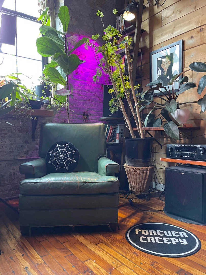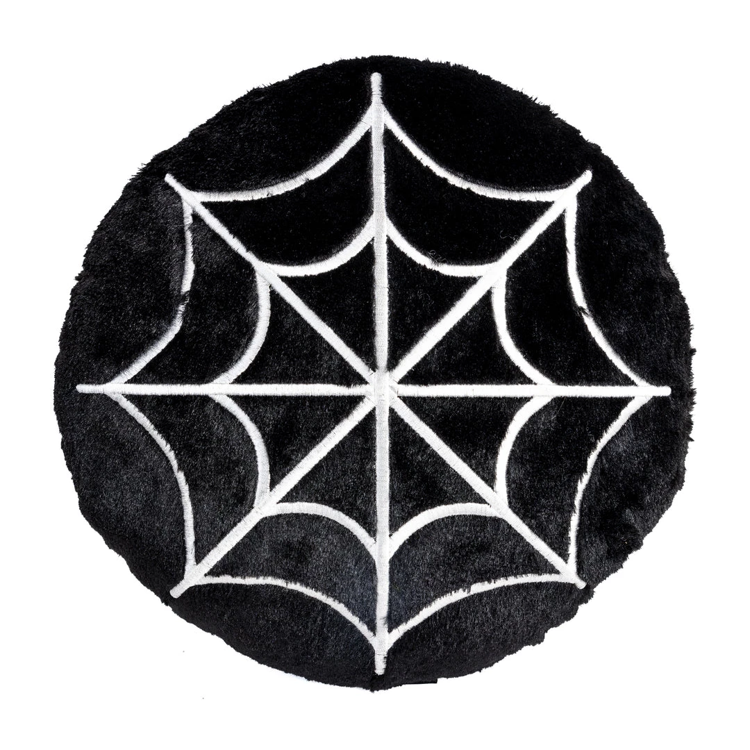 This Furry Spiderweb Pillow is so soft and lush, you’ll be wishing you were caught in it’s web! Created from a soft and furry low pile black faux fur, it has embroidered spiderweb details in white on the front. Makes a welcome accent on any chair, couch, or bed!