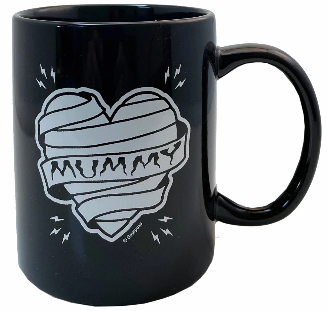Are you a horror movie lover and a mom?!?!?! We have you covered…literally… with Mummy bandages shaped as a heart. Double sided print in white.