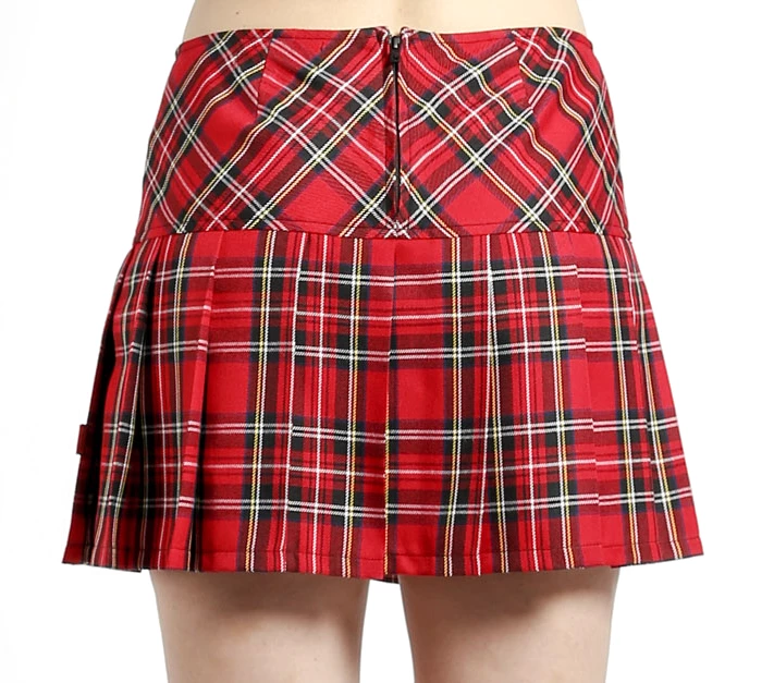 Get that uniform look without all the private school nonsense with this Pleated Woven Skirt from Tripp! This short red plaid skirt goes with many different styles and has a back zip for easy on and off.
