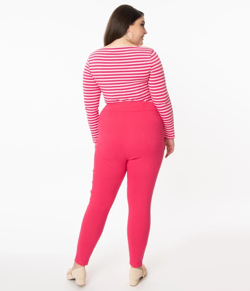 Let ’em see ya coming and going! Crafted from a hot pink stretch fabric, the Rizzo Pants from Unique Vintage are a vintage loving gals dream pants! The classic fit and dramatic high waist slims and elongates your figure in the best way. The cigarette skinny leg ends at the ankles, for the perfect retro look! Zips close at side.