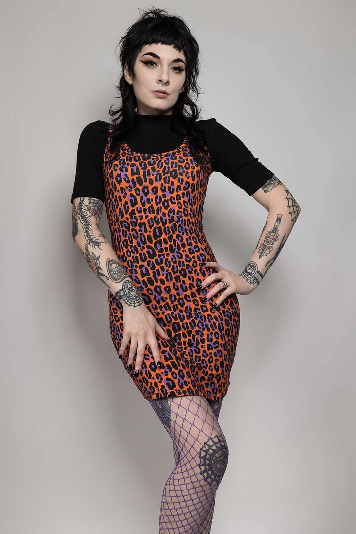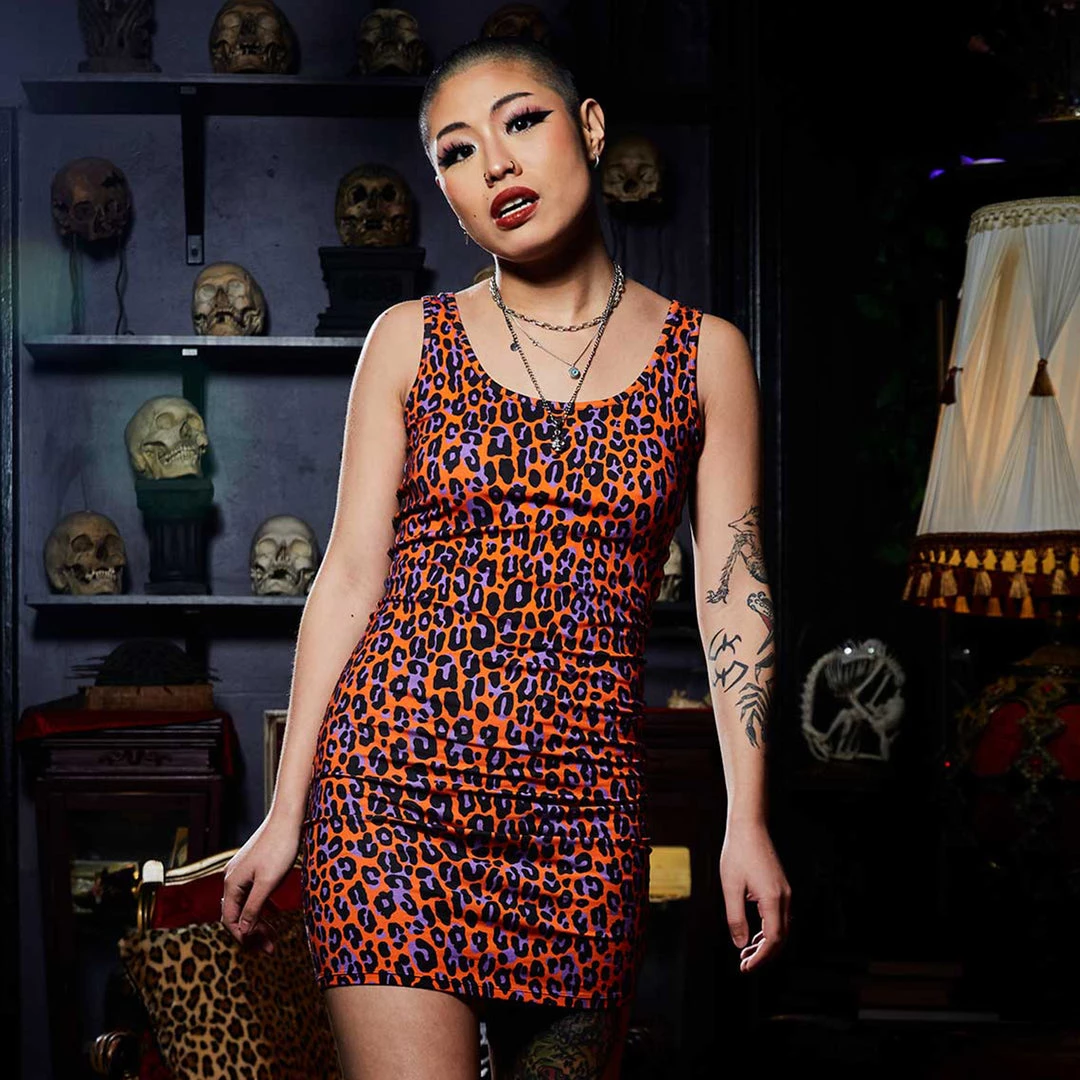 Strut your stuff in the new Orange Leopard tank dress! This stretchy, fitted dress features our orange and purple leopard print, and is so versatile it can be worn any which way you like!