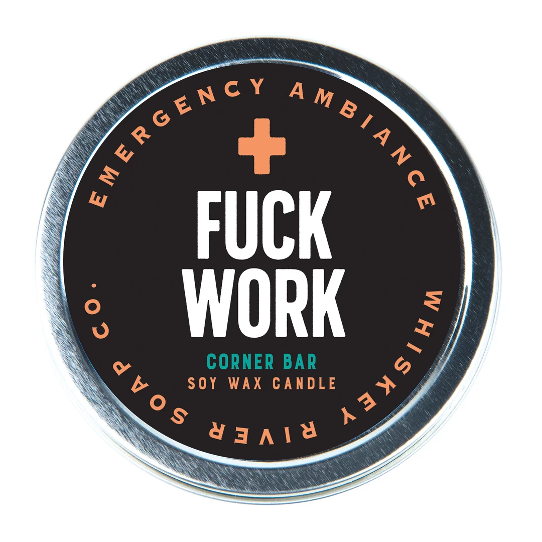 WHISKEY RIVER SOAP CO. F*CK WORK EMERGENCY AMBIANCE TIN SOY CANDLE Homewares