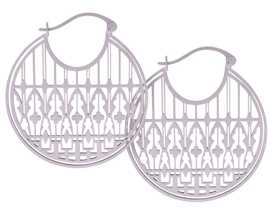 The Gothic Cathedral Hoops from Wildcat are an architectural dream. You like sacral buildings and are fascinated by the gothic epoch? Then these wonderful hoops are exactly the right thing for you! These cool, silver-colored hoops are made of high-quality stainless steel and are sold in pairs. They are very lightweight, so they won’t drag on your ears throughout the day. They can be worn in your normal lobes as well as in your tunnels.