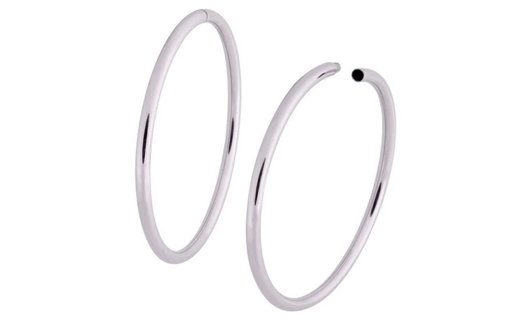 These are THE perfect hoops if you have stretched lobes! The Hollowed Hoops from Wildcat in stainless steel with a silver finish are a seemingly seamless hoop that opens with a slight pull and twist motion then easily closes once you have them through your tunnels. Not to mention, they’re a generous size, lightweight, and go with everything! They wear best in a tunnel size of 6g and up and are not suitable for normal pierced lobes.